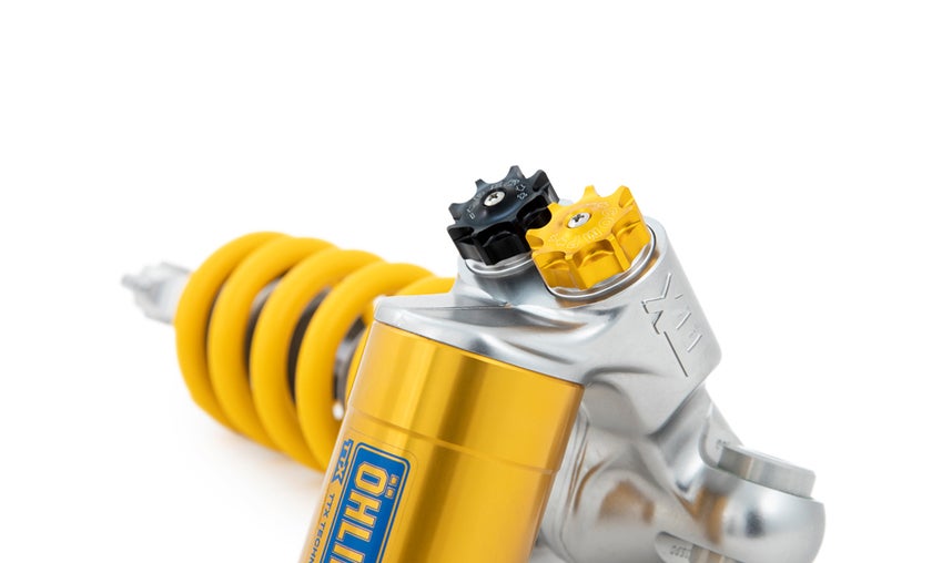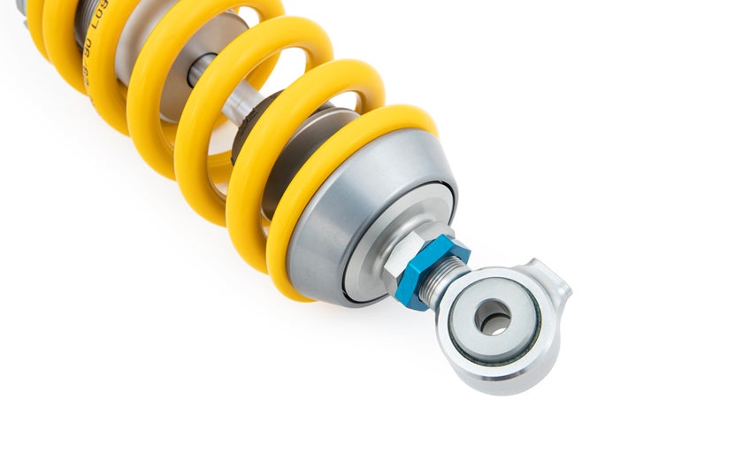 Adjustable rebound damping. Adjuster wheel or slot above the end eye.