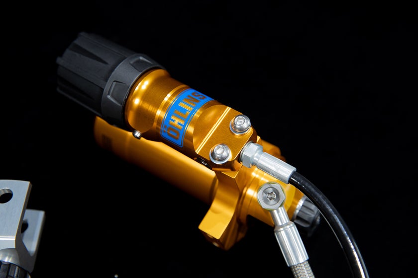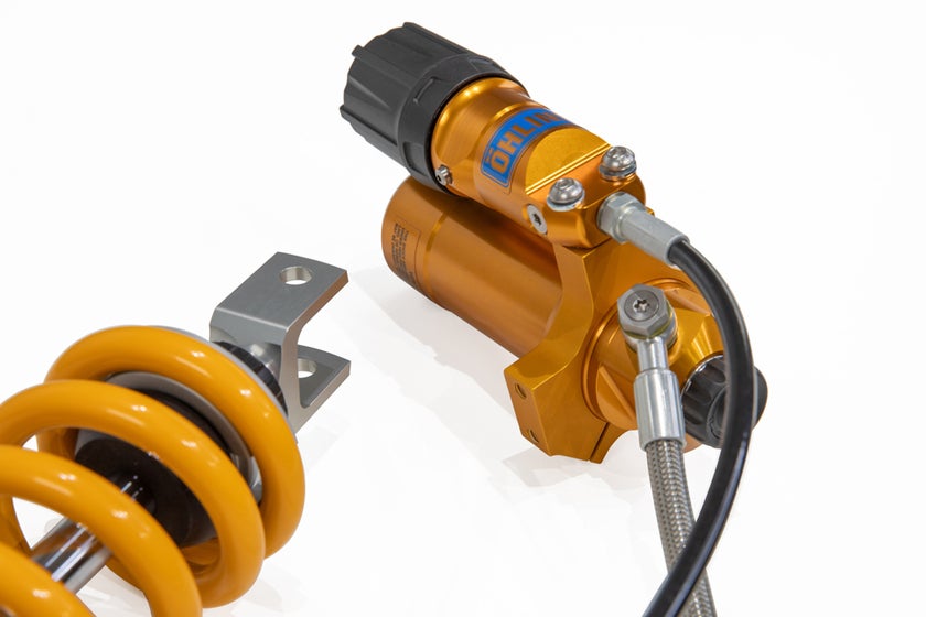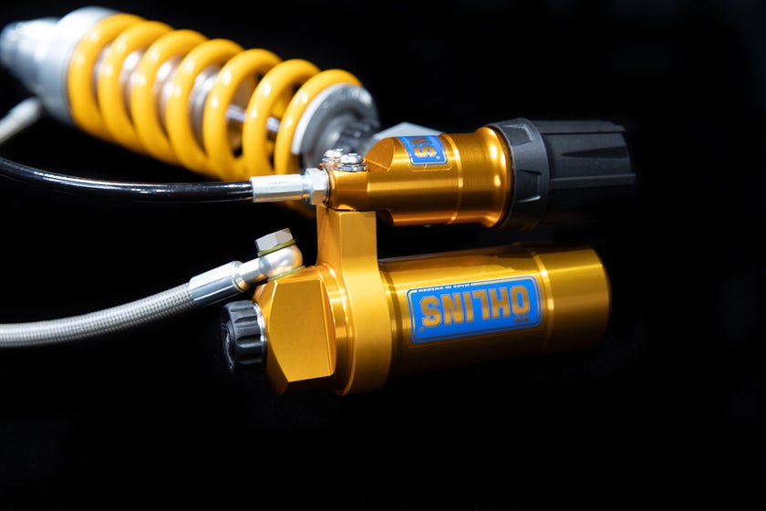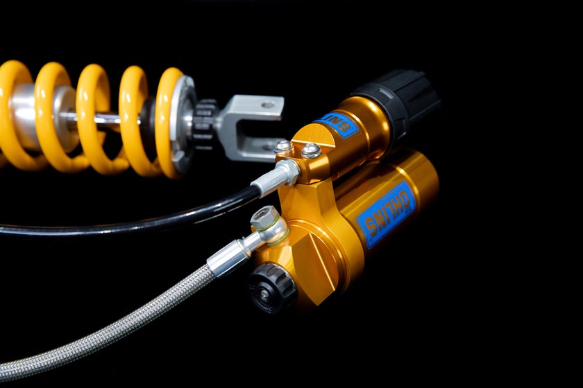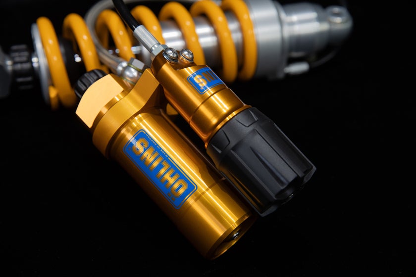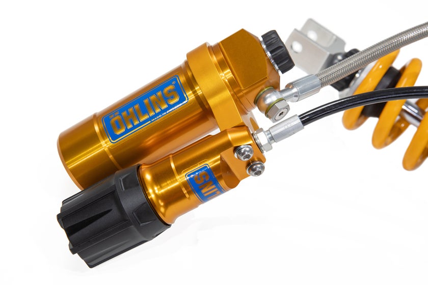 The Öhlins STX 46 Adventure shock absorber is a major performance upgrade for most major models in the adventure category. With its classic monotube design and large 46-mm piston, the STX 46 Adventure shock delivers maximum performance wherever your adventure takes you. Available in a wide range of configurations, this shock is designed to fit in virtually any mounting space—no matter the constraints.