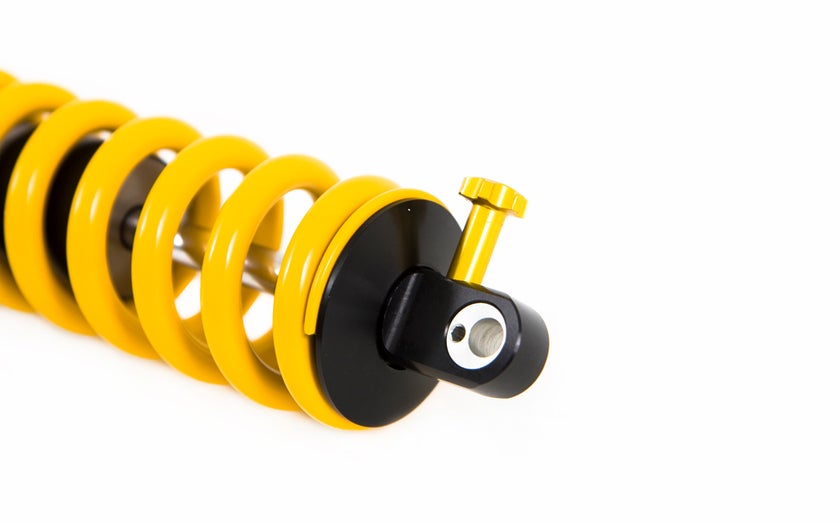 Changing both spring and stroke is an easy operation on the TTX22m.2. This is achieved by adding or removing 2.5mm washers under the bump rubber cup. No special tools are required, nor is shock disassembly needed to perform the operation. The spring, meanwhile, can be changed by simply loosening the preload and removing the spring seat lock ring. The spring can then slide over the end eye, making it easy to optimize shock performance and sag.