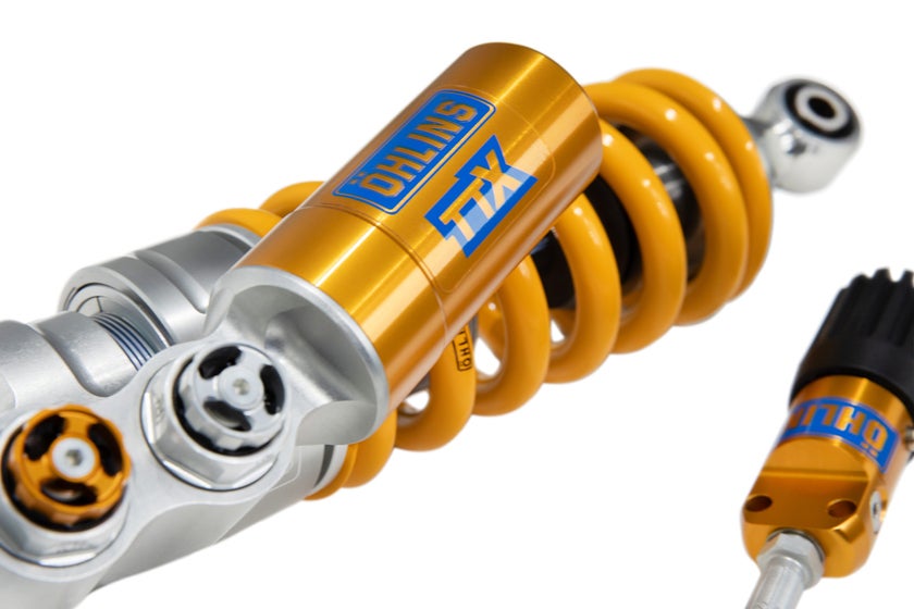 Öhlins TTX technology maintains pressure balance in the shock, giving you more precise and consistent damping characteristics, even under the most demanding track conditions. Compression and rebound damping functions are kept separate, with MotoGP-inspired adjuster knobs and a wider adjustment range to help you fine-tune the damping behavior. Adjustments to compression and rebound damping can be made by hand or with a hex key.